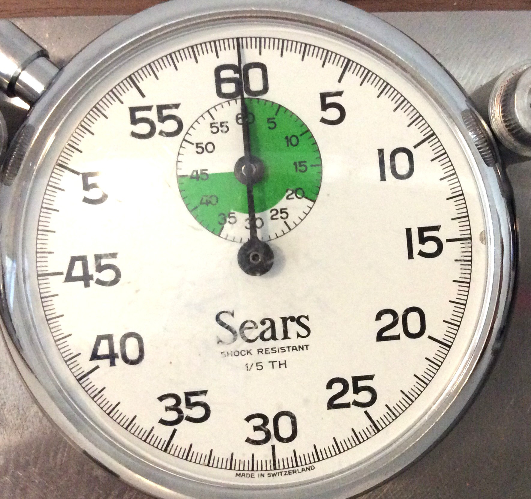 Highlights include four Heuer/Sears stopwatches: a pair of three-pusher …